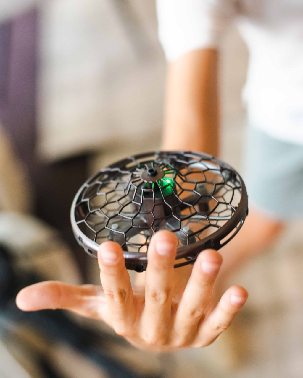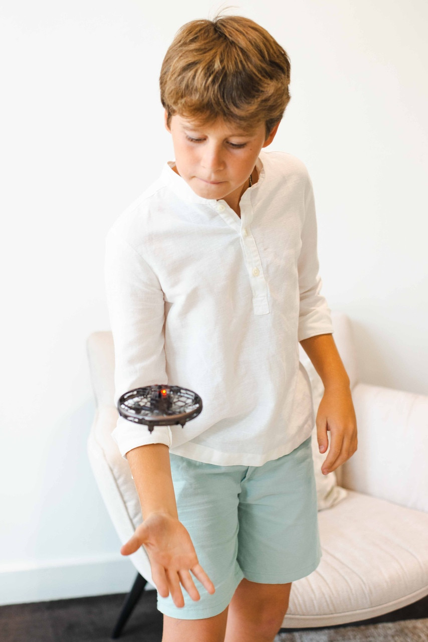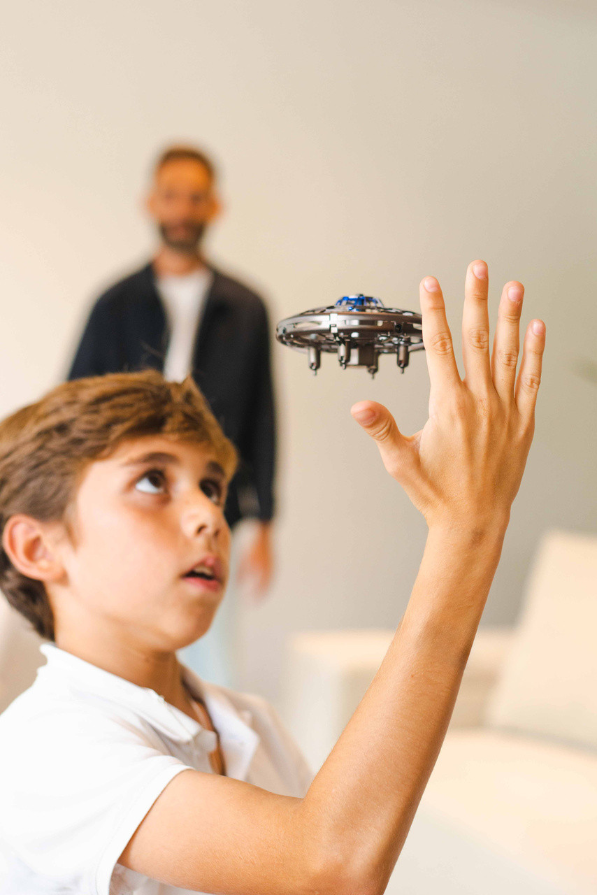 Ten model doskonale sprawdza się do zabawy w domu, w szkole czy podczas rodzinnych spotkań. Lekka, wzmocniona obudowa chroni drona przed upadkami, a delikatne krawędzie sprawiają, że jest bezpieczny dla dzieci. Efektowne podświetlenie LED pozwala cieszyć się zabawą także po zmroku, nadając mu nowoczesny, futurystyczny wygląd.
