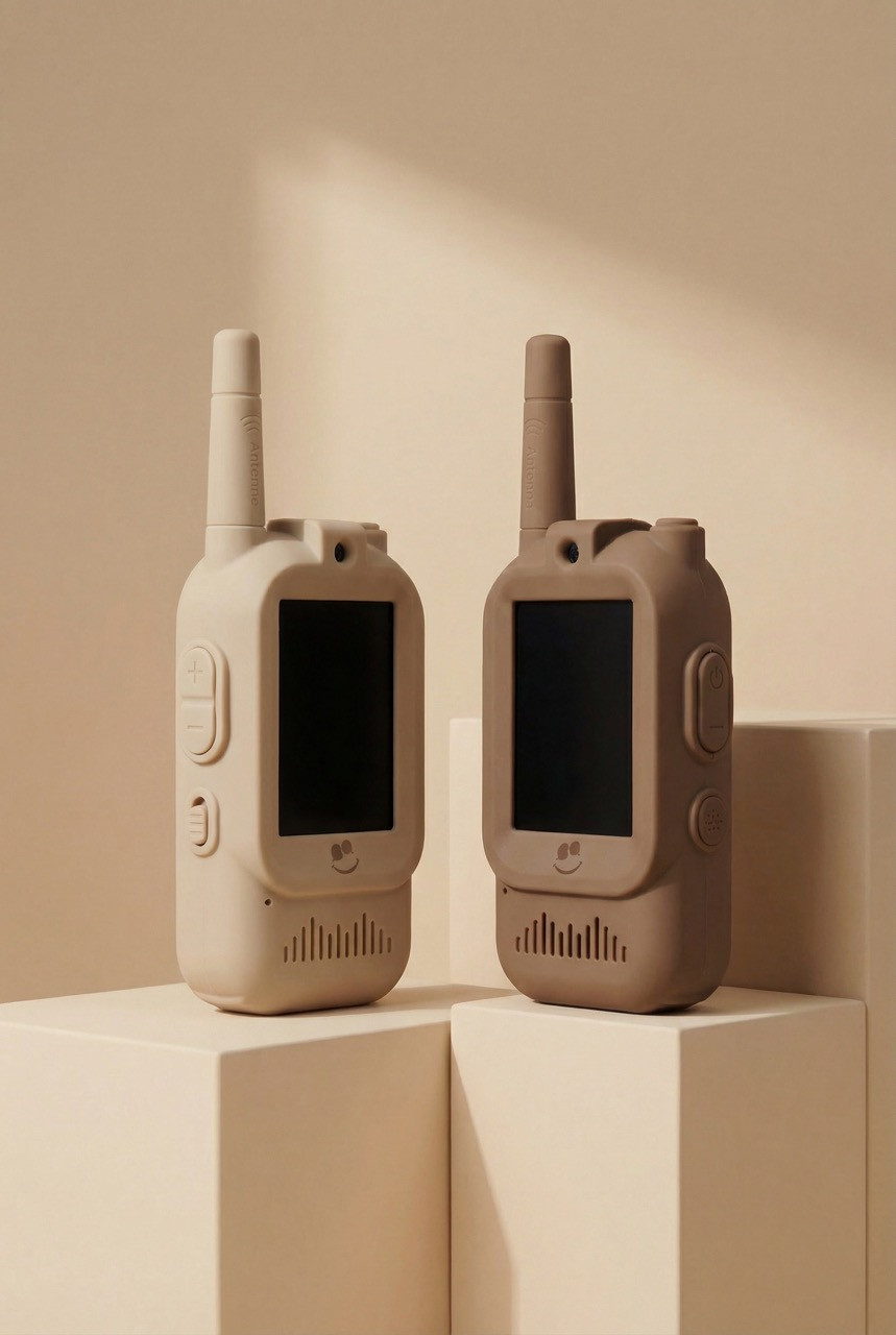 KidTooki Beżowe i Brązowe to krótkofalówki wideo dla dzieci, które zamieniają zwykłą rozmowę w bardziej angażującą zabawę. Dzieci mogą nie tylko słyszeć się nawzajem, ale także widzieć rozmówcę na ekranie w czasie rzeczywistym, bez korzystania z telefonu, aplikacji czy internetu. To rozwiązanie stworzone z myślą o relacjach i wspólnej zabawie, a nie o biernym patrzeniu w ekran. Stonowane beżowo-brązowe wykończenie nadaje zestawowi spokojny, neutralny wygląd, który dobrze wpisuje się w estetykę dziecięcych akcesoriów.